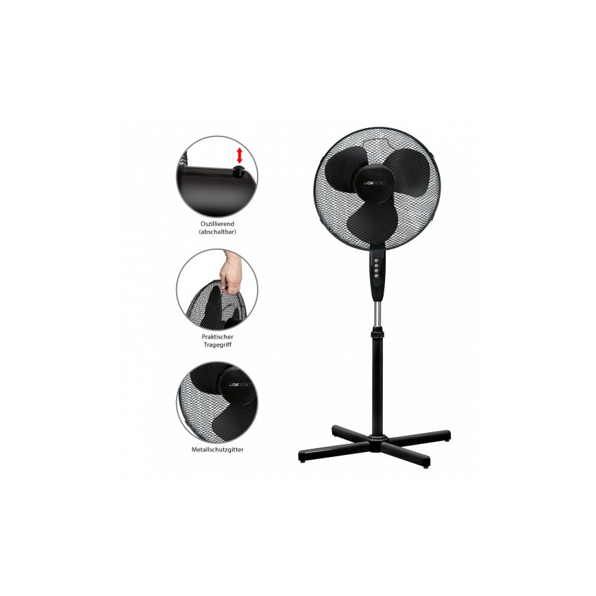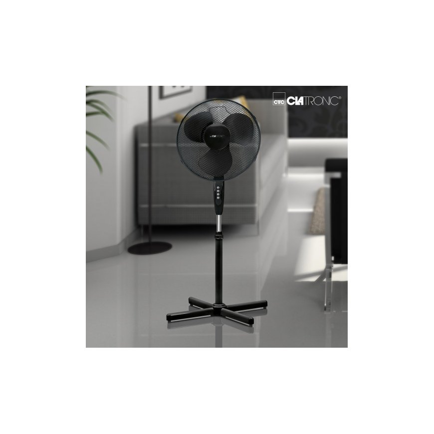 Clatronic VL 3603 S. Type: Household bladeless fan, Product colour: Black, Placement: Floor. Power source type: AC, Power consumption (typical): 45 W, AC input voltage: 220 - 240 V. Package type: Box