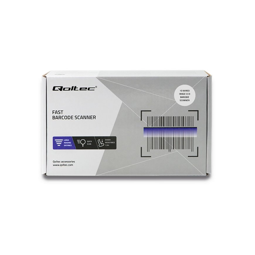 RELIABLE AND EFFICIENT Barcodes are everywhere. You will find them in warehouses, stores, pharmacies, offices, gyms and many other places that you visit every day. A Qoltec barcode reader is perfect for all of these locations. Our device guarantees: - reading 1D codes, - efficient work at the speed of 500 scans per second, - resistance to falls (from a height of 1.5m), - scanning codes at different angles, including inverted ones, - confidence that the code has been read correctly thanks to the sound signaling.