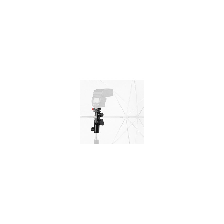 The Holder is tiltable, which is especially beneficial for flash devices without adjustable angle. The flash shoe offers a special extra: In contrast to many other holders, on which the flash feet can only be slided into the flash shoe, this walimex item provides a stable screw connection and therewith increased stability. The sturdy metal workmanship makes the product long-living and strong.