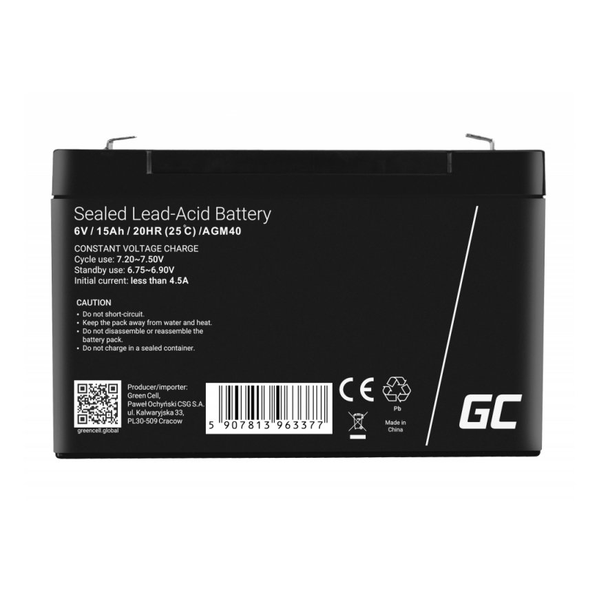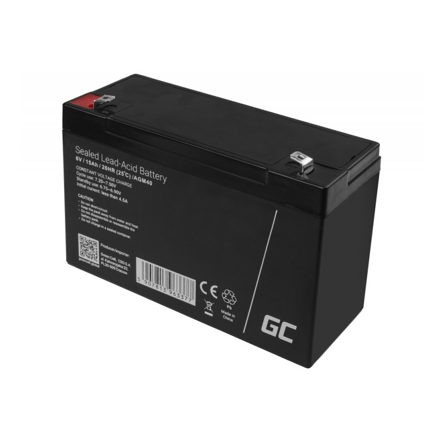 Green Cell AGM accumulator with a capacity of 6V is made from highest quality materials. The device is perfect to be used heavily, but also to be used from time to time. The accumulator is based on AGM technology, which means that the electrolyte is absorbed by a fiberglass separator, preventing its leakage. This way the device can work in different positions, not just vertically. This is a perfect and much safer alternative for lead-acid accumulators.