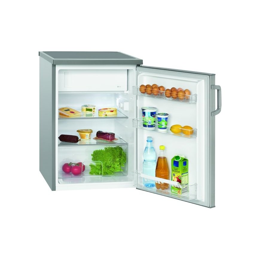 Pay 5x53.93€Bomann KS 2194. Appliance placement: Freestanding, Product colour: Stainless steel, Door hinge: Right. Total net capacity: 119 L, Climate class: N-T, Noise level: 40 dB. Fridge net capacity: 105 L, Lamp type: LED, Fridge temperature range: 0 - 4 °C. Freezer position: Top-placed, Freezer net capacity: 14 L, Freezing capacity: 2 kg/24h. Energy efficiency class: D, Annual energy consumption: 94 kWh, Energy efficiency scale: A to G