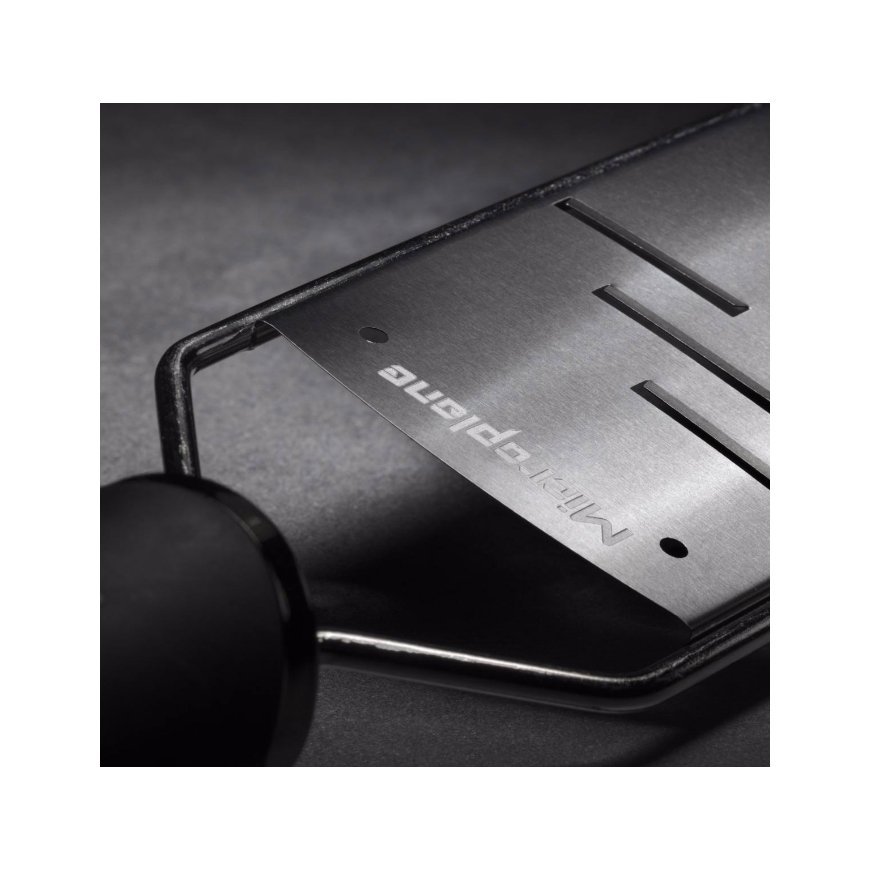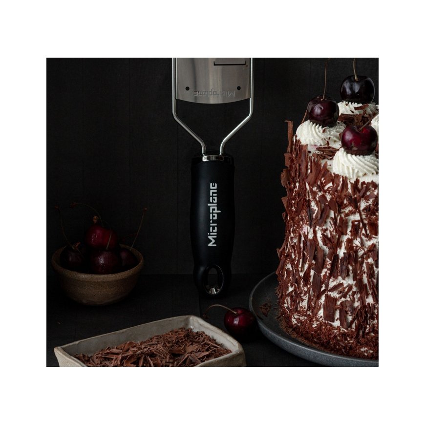 The Microplane Gourmet Series Large Shaver has an expansive paddle with large and well-spaced edges for shaving coconut, chocolate, hard cheese, garlic and ginger. Also used to make carrot strips, the shaver is a versatile tool that provides wide grated results often found in salads. The stainless steel blades are made in the USA. Ultra-sharp photo etched teeth make fast work out of any grating chore. The Stainless steel frame provides extraordinary durability. The soft touch handle matches back to the premium classic series zesters. The non-skid foot adds stability when grating on counters and plates, and a reusable cover is included for safer storage.