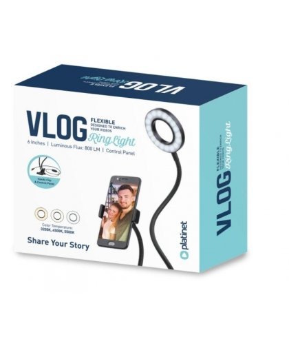 PMRL3 PLATINET RING LIGHT 3 INCH WITH FLEXIBLE PHONE CLIP is a LED lighting lamp aimed at beginners and more demanding vloggers. It is intended to illuminate together the improvement of the quality of streaming materials, vlogs, recordings for Instagram, Youtube or TikTok. It is perfect for indoor usage.The lamp has a flexible frame that allows you to set it in the right position. An additional holder allows for quick and safe mounting of the phone. A handy clip allows you to attach the frame to vertical and horizontal surfaces to better suit the user's needs.It is powered by a 5V USB cable. In addition, it has a control panel located on the cable from which we can easily turn on and off the lamp and change the brightness and color of the lighting.SpecificationDiameter: 3 inchesFlexible frame that allows you to set the lamp in the range of 360 degreesNumber of LEDs: 24Power 4WUSB 3.7 - 5V power supplyMaterial: ABSPhone holder: yesOuter diameter: 9 cmInner diameter 4.8 cmThickness 1.5 cmColor Temperature: 5500K-4500K-3200KLuminous Flux: 300 LMWeight 420gControl: remote control on the cable (switching on, off, changing the brightness and color of the matchmaker)