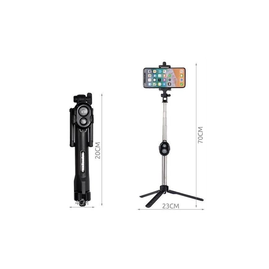 RoGer Selfie Stick + Tripod Stand with Bluetooth Remote Control Black
