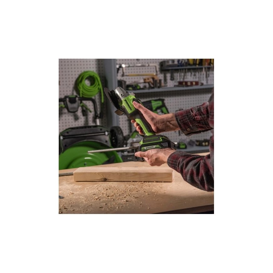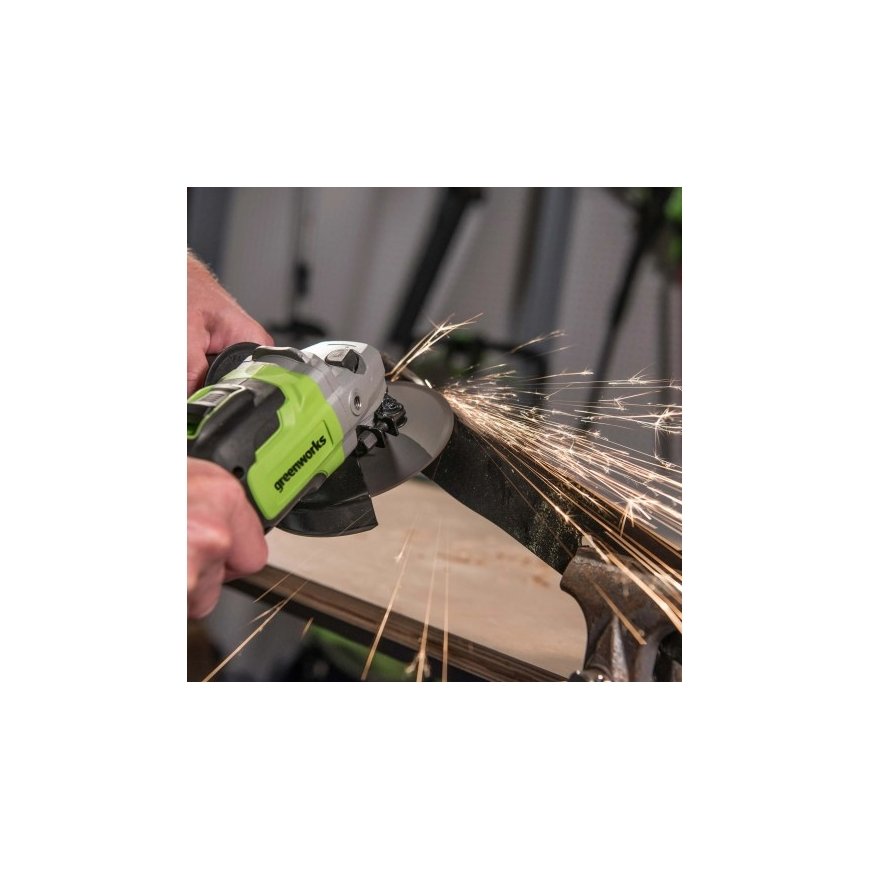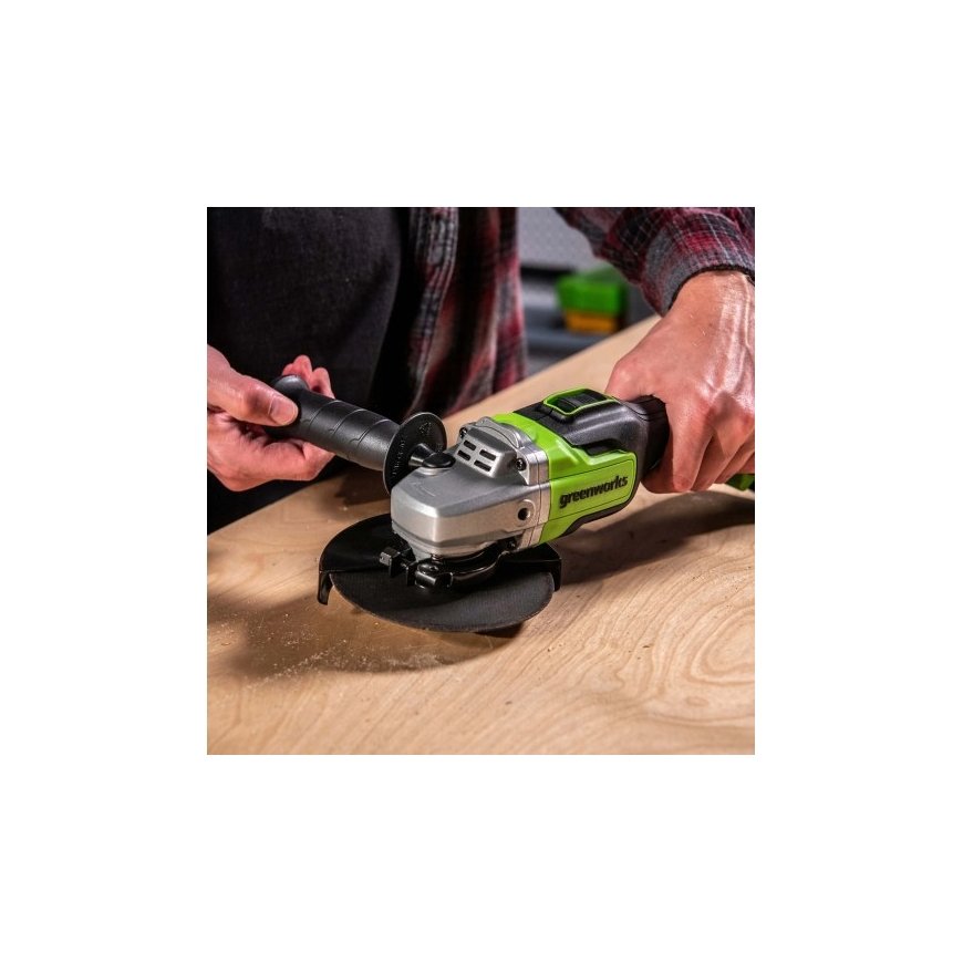 The Greenworks GD24AG is a robust, lightweight 24V angle grinder designed for home and DIY tasks. Powered by an advanced 24V lithium-ion battery, the machine offers high performance despite its compact size. Convenience is guaranteed with no electric cables to contend with, simply insert the battery and work.