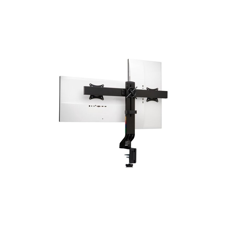 Knob allows you to quickly and easily adjust height (239-470mm), tilt and swivel (±10°), rotate to landscape or portrait orientation (±180°) and lock your monitors in place. Quick-release VESA« mounts simplify monitor installation.