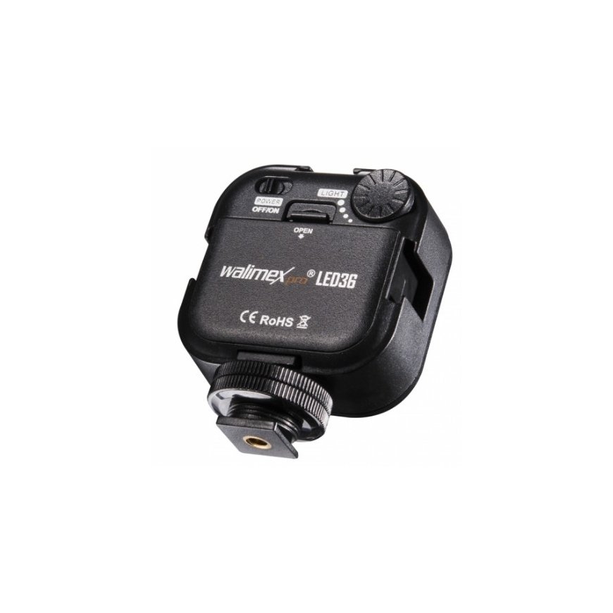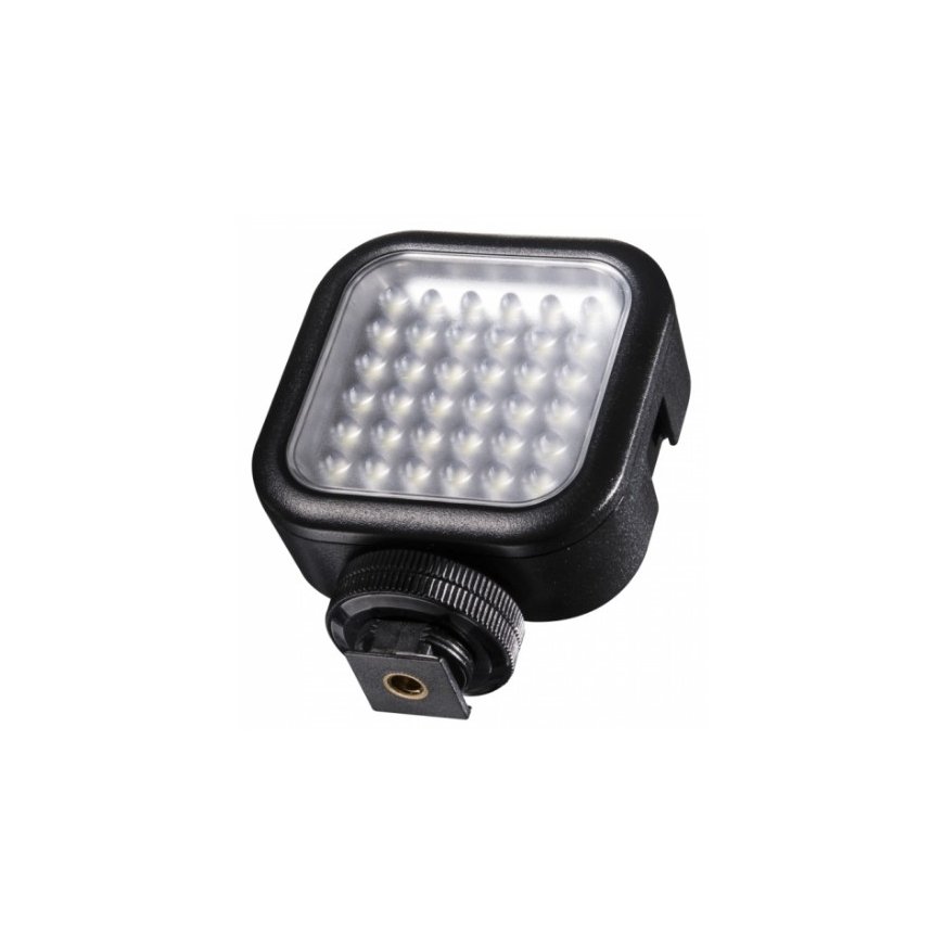 Compact video floodlight with 36 powerful LEDs The video light, which is powered by 2 AA batteries, is the ideal solution for all Actioncams, like e.g. GoPro Hero, Camcorders and DSLR and with its 36 powerful LEDs it ensures high light gain and thereby sufficient brightness in case of inappropriate ambient light. This is of advantage when shooting in the dark or in insufficiently illuminated rooms. The most convenient feature is the fact that the light intensity can be infinitely dimmed.