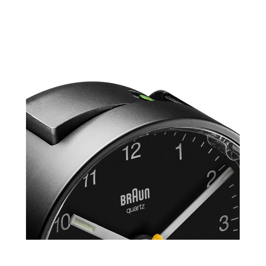 Featuring an easy to read dial layout and the iconic yellow second hand that has become synonymous with Braun’s award winning design history. The BC01B has been updated to include an integrated foot snooze/light feature, improved movement and luminous tipped hour and minute hands. The clean, simplistic dial and contrasting hands with luminous tips offer great legibility, and the quartz tick movement is quiet and precise.
