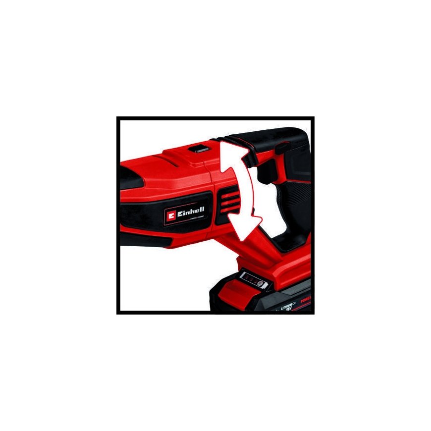 As a member of the Power X-Change series from Einhell, the Einhell TE-AP 18/28 Li BL - Solo cordless reciprocating saw offers flexible and limitless combination options. Each rechargeable battery in the system series can be combined with any PXC device. The brushless motor offers more power and runs longer than conventional carbon brush motors. The anti-vibration function ensures low vibration during operation, while the soft grip surfaces make the cordless reciprocating saw comfortable to use and ergonomic to handle. The rotating main handle ensures maximum flexibility. The adjustable soleplate enables optimal use of the blade, and rapid, tool-less blade changes keep things simple. A high-quality wood blade from KWB is included in the scope of delivery. This product comes without a battery or charger. For optimum use we recommend a rechargeable battery delivering 2.5 Ah or higher.