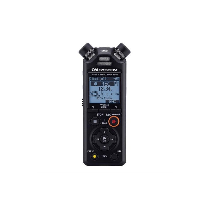 Pay 5x42.57€The OM SYSTEM LS-P5 Linear PCM Recorder offers the excellent sound quality characteristic of the LS series for anyone looking for professional-level recording quality, from filmmakers to tube players and from students to journalists. The compact and durable LS-P5 is ideal as a stand-alone recorder or used with a camera. Bluetooth enables monitoring with wireless headphones or the recorder's wireless remote control application via a smartphone. In addition, the recorder has a 3.5mm input for, for example, an external microphone.