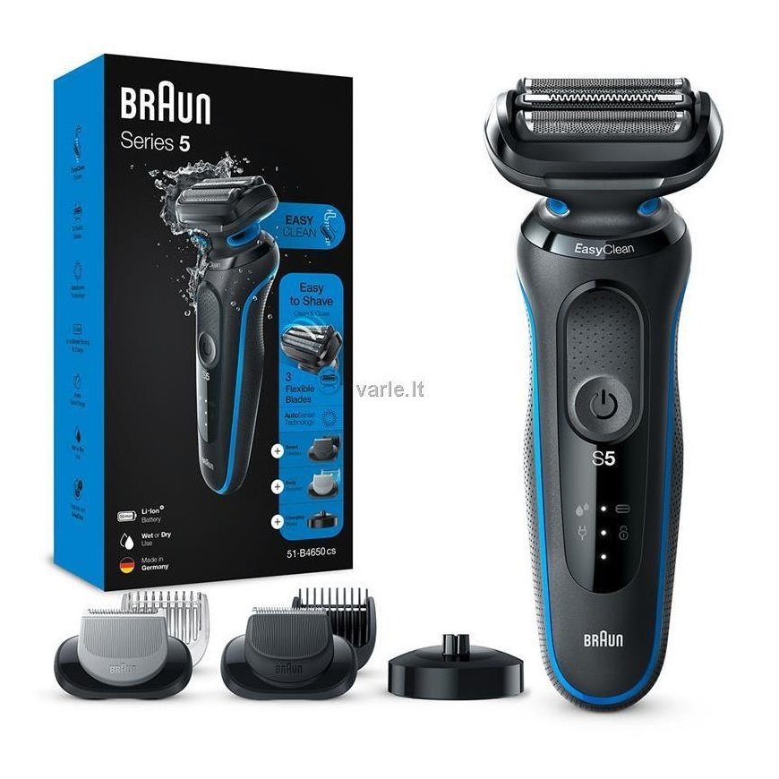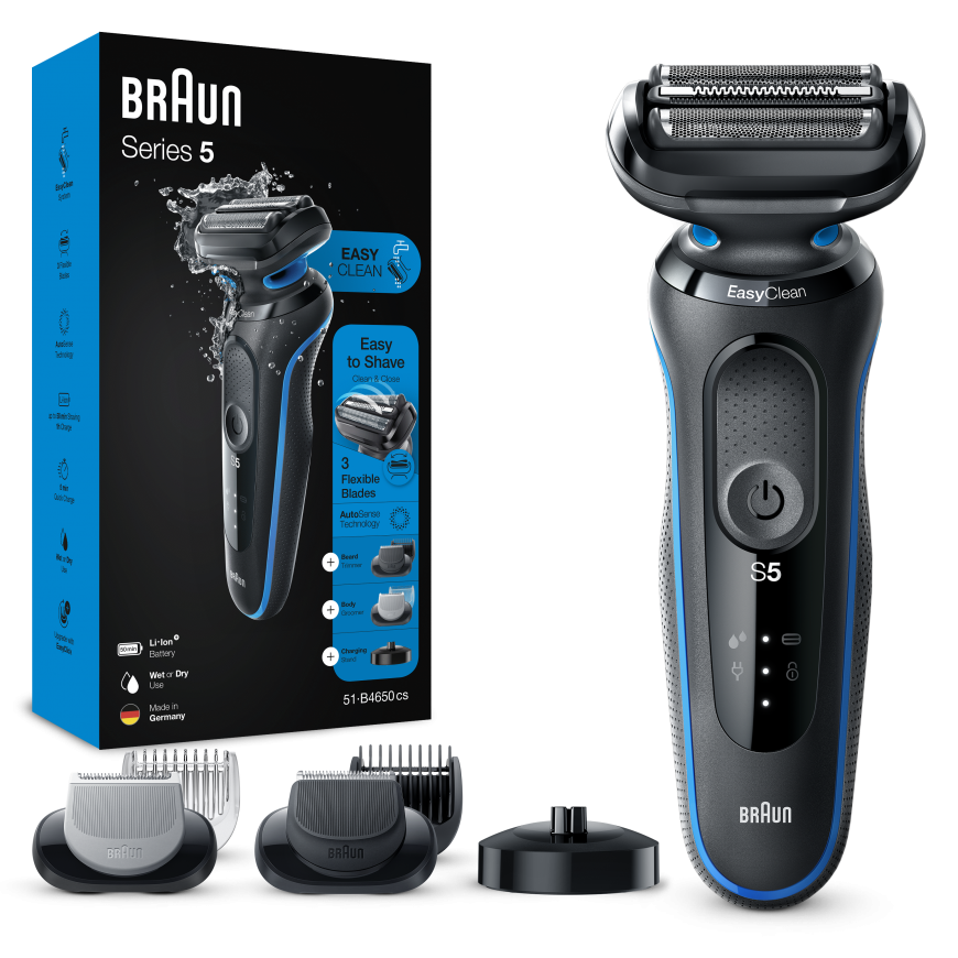 Pay 5x32.69€Braun Series 5 51-B4650cs Electric Shaver with Charging Stand Beard Trimmer Body Shaver Wet Dry Shaving Rechargeable Cordless Shaver with Plate White