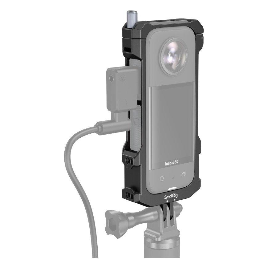 Pay 5x21.80€SmallRig 4088B is a frame for the Insta360 X3 camera. A microphone and other accessories can be easily attached to the frame. The frame has an action camera-type two-pole attachment, which is suitable for e.g. For GoPro mounts. The bracket can be attached either to the side or to the bottom of the frame. The aluminum frame also protects the camera from bumps and shocks.