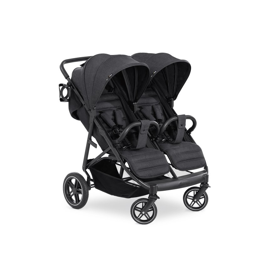 The two 5-point harnesses and padded bumper bars with anti-slip protection and the parking brake help keep your children safe at all times. Toys, purchases and food can be stored in the large shopping baskets, while your drink is right at hand in the practical cup holder.