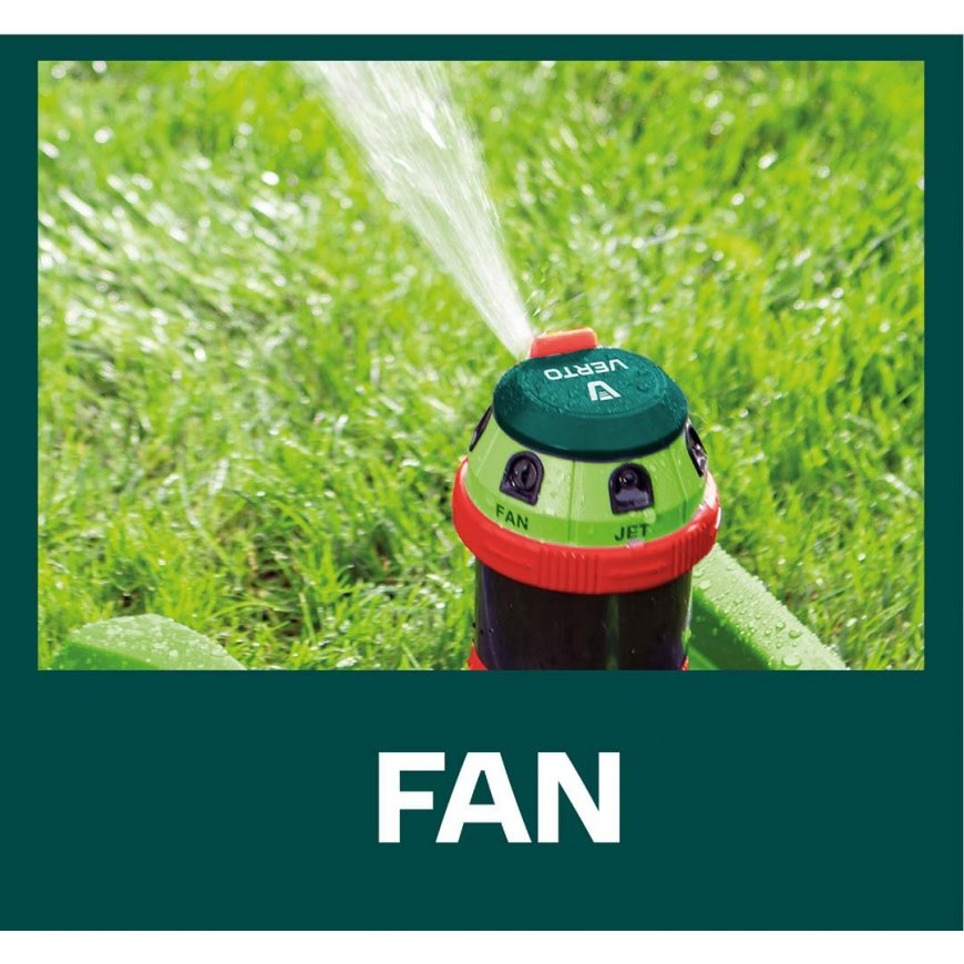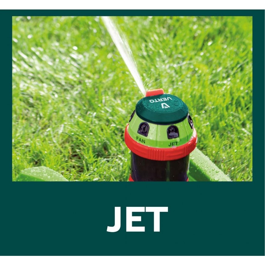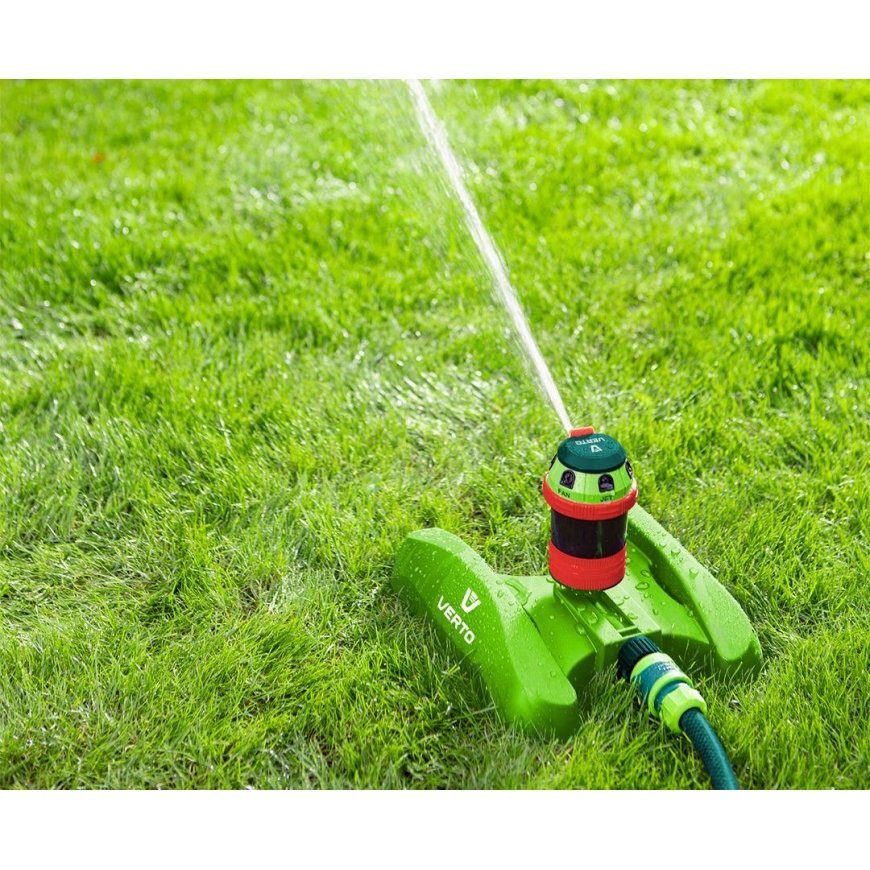 Zraszacz sektorowy 6-funkcyjny z drzafenem VERTO (nr. ref. 15G788) which pozwala na effektiv podlewanie nawet przy nijszym ciśnieniu wody. A stable base and an adjustable reach to the corner of the stream ensure even watering. Dzieki powierzowi maxymalna powierzchnia podlewania to aż 350m2. 6 different types of podlewania pozwala na wybara najlepiej najlepiej dobranego rodzaju strumienia do szławu nawadnianej powierzchni.
