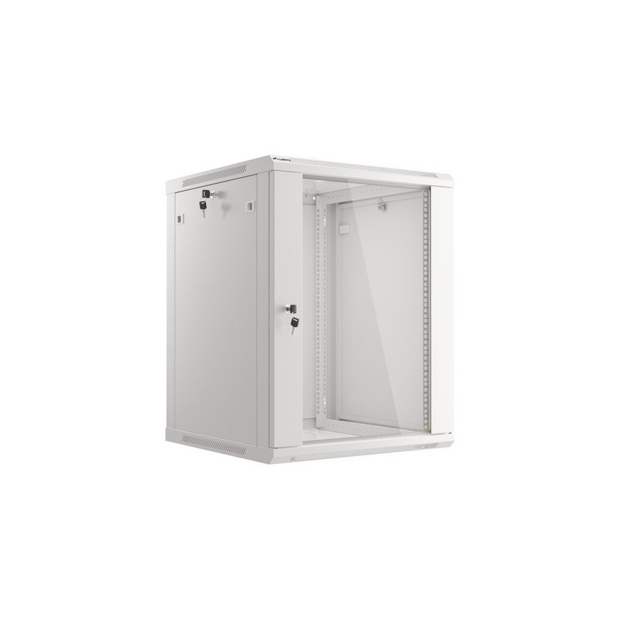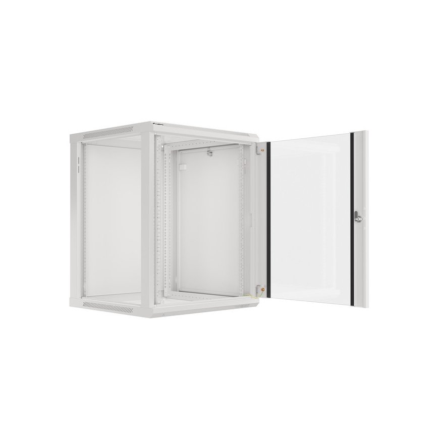 Wall mount, single section Lanberg cabinet WF01-6615-10S is a solution designed to expand networks, installation of cabling and equipment in size 19” with max. 60kg. loading capacity. It can be used in networks, server rooms, small and medium businesses. It can also work in low voltage systems such as cable television networks, alarm systems, fire protection systems and access control systems, CCTV and IP surveillance. Appropriate design allows simple, self-assembly. Cabinet is characterized by IP20 degree of protection, opening front door with possibility of rotate to 180° with lock, removable side panels (locks included). The cabinet has cable entry panel on top and bottom cover. This product is made of high grade cold rolled steel. Cabinet structure for self-assembly is in flat pack which facilitates transport. In addition, parcel includes additional accessories for rail mounts, M6 cage nuts and blank entry panels.