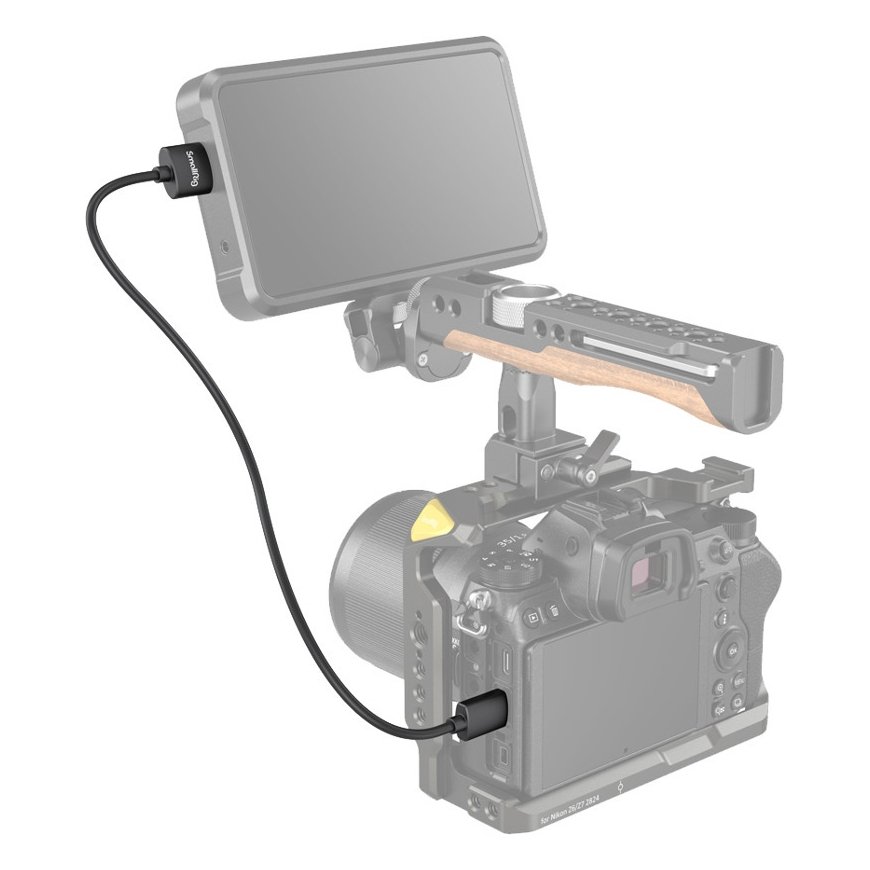 The SmallRig 3040 is a high quality, short HDMI cable between the camera and a video recorder or monitor. It has a Mini HDMI (C) connector on one end and a full-size A connector on the other end. It is very thin and flexible, which makes it a great choice for just this use.