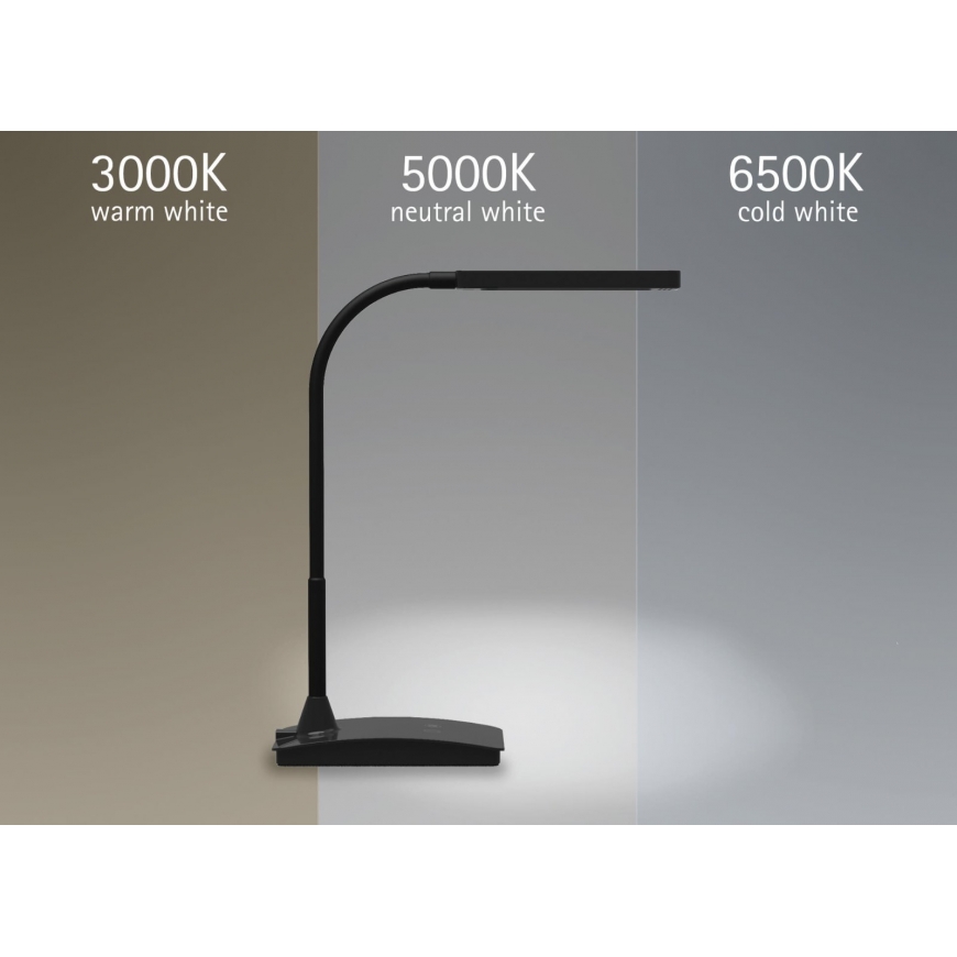 The powerful compact lamp Flexible: colour temperature and illuminance can be adjusted in 3 steps depending on the time of the day and personal needs Good illumination of a limited area with strong light need Extremely economical: latest LED technology Convenient: stable arm with flexible range for adjustment of the angle Technical safety concept Made by MAUL Convenient control buttons with touch function on the lamp base Space-saving and easy to handle Illuminance of the lamp: 1360 lux illuminance at 35 cm distance Colour temperature per light source: 3000 Kelvin (warm white) to 6500 Kelvin (daylight white) Number of light sources: 1 Energy efficiency class per light source: D (spectrum A to G) Weighted energy consumption per light source: 5 kWh/1000 h Life per light source (L70B50): 50000 h Useful luminous flux per light source: 616 Lumen Base: Base Material: Head: plastic - Arm: steel - Foot: plastic - Base: weight inlay, desk protection pad Dimensions: Height: 36 cm - Arm: length 35.7 cm - Head: 16x6 cm - Base: 16,5x10,6 cm Movement: Head: inclinable, rotatable - Arm: fixed Position of the switch: Base Environmentally friendly and safe packaging, recyclable Technical safety concept Made by MAUL: we never include a lamp or illuminant in our range unless it has successfully passed intensive testing. The safety of the LED desk lamp MAULpearly colour vario, dimmable is guaranteed by our optical, electronic and mechanical development team as well as production engineering team
