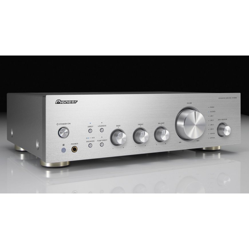 The A-40AE features an aluminium volume knob with a solid, highgrade feel and style. The simple aluminium front panel also adds a touch of elegance to the audio experience.
