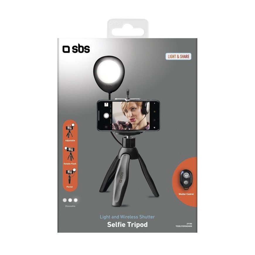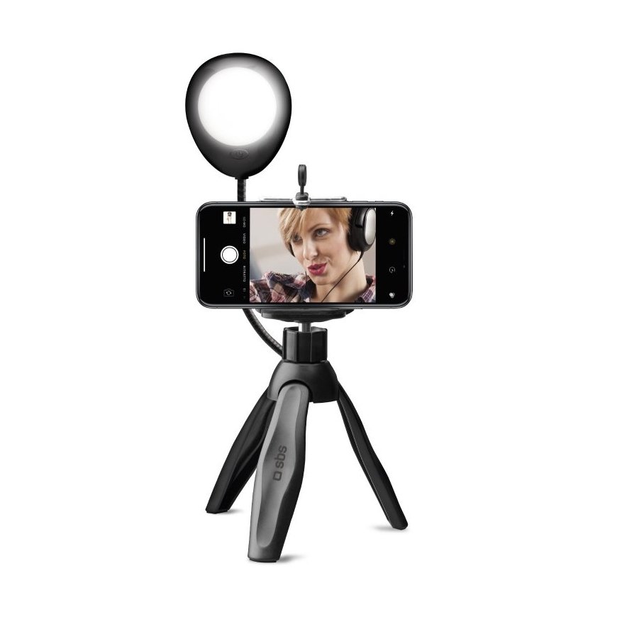 TAKE PHOTOS AND VIDEOS WITH CONSISTENTLY GOOD EXPOSURE The Selfie Tripod with a light from SBS is designed to facilitate and enhance selfies, video calls and live streaming under any conditions. Photos or videos will be properly illuminated even in closed spaces with little light, such as a room or other inside space, or outdoors at night. By attaching your Android or Apple smartphone to the tripod, you'll have greater stability than on any flat surface and avoid shaky or off-centre shots.