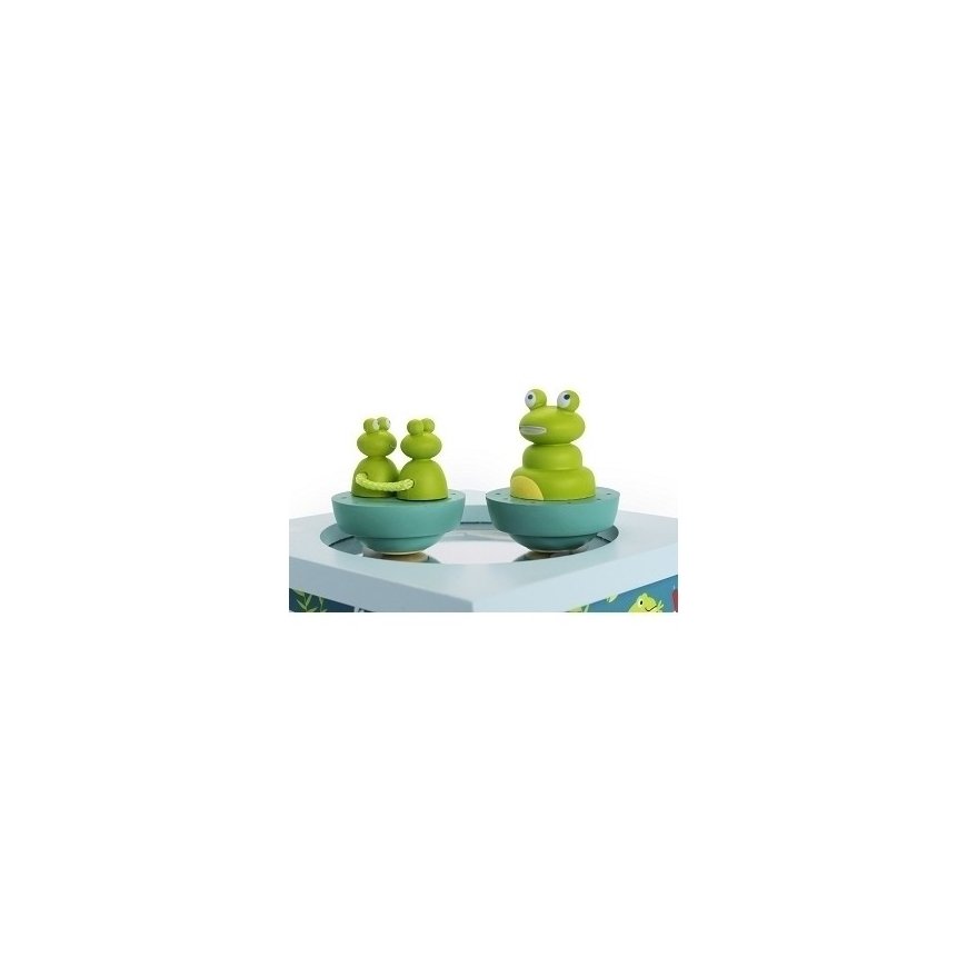 TROUSSELIER - Frog & Babies - Dancing Music Box - Ideal Birth Gift - 2 Removable Figures - Easy to use - Sound of Silence Music by Simon & Garfunkel - Blue Colori.
