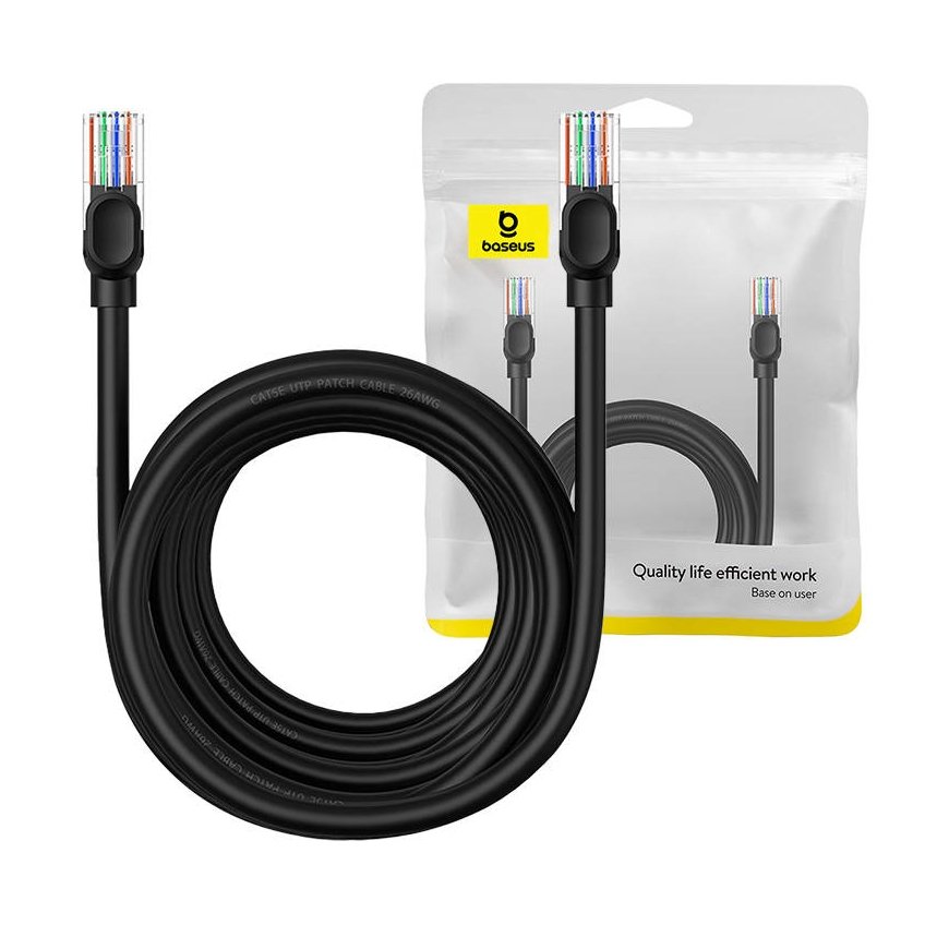 Ensure a reliable connection to the Internet! The Baseus network cable offers speeds as fast as 1000 Mbps and works with many popular devices. Reinforced construction made of durable PVC guarantees durability and resistance to damage. The 26 AWG thick cable conducts the signal perfectly, ensuring a stable connection, while gold-plated contacts reduce interference.