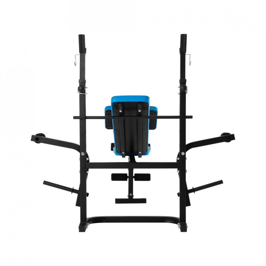 Backrest adjustment: 3 levels Distance between bar stands: 60 cm Stand height: 110 - 123 cm Maximum load on the racks: 100 kg Maximum load of the leg trainer: 25 kg Maximum wing load: 25 kg Profile thickness: 1.2 mm Construction: steel Seat dimensions: 30 x 31 x 5 cm Backrest dimensions: 75 x 25 x 5 cm Armrest dimensions: 43 x 25 x 5 cm Seat/Prayer Material: Synthetic Leather Height from seat to ground: 45.5 cm Surface finish: powder coating Maximum bench load: 220 kg Dimensions: 161 x 130 x 123 cm Weight: 21 kg