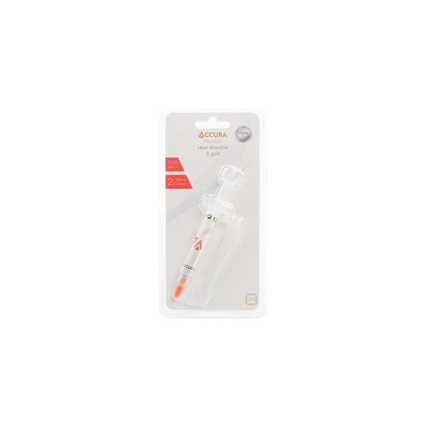The "Gold" formulation signifies its superior thermal conductive properties, often associated with special fillers to enhance efficiency. Accura Heat Absorber 6 Gold boasts high thermal conductivity, low thermal resistance, and a stable consistency that makes application straightforward. It does not dry out or harden over time, ensuring long-term, reliable performance. It's an ideal choice for new PC builds, cooling system upgrades, or replacing old thermal paste on gaming computers and workstations where maintaining stable component temperatures under load is critical.