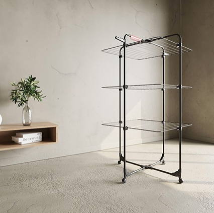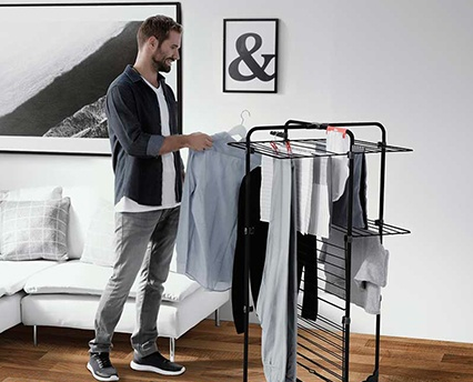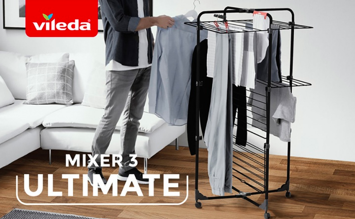 It's an efficient solution that offers up to 30 meters of drying space and compact dimensions, making the Mixer 3 Ultimate dryer an ideal choice for small rooms. Thanks to 6 independent upper parts that can be folded or removed, the dryer can be set up and adapted to your needs. After removing the laundry, you can fold it flat for easy storage later. Swivel castors make it easy to move, even when the dryer is loaded with laundry. Mixer 3 Ultimate is a perfect combination of functionality and elegance.