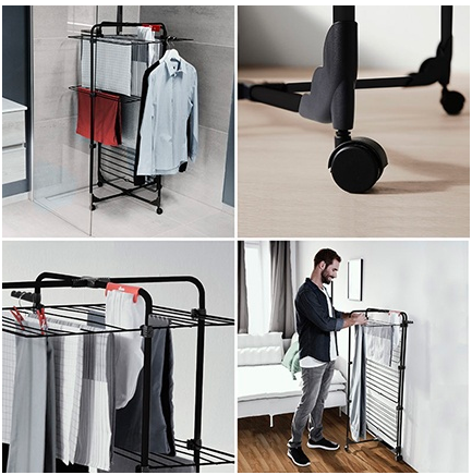 6 independent top sections that can be folded or removed allow you to dry clothes of any length.