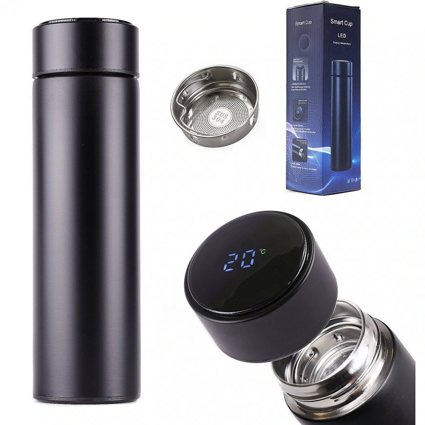Check out our elegant mug with LED display that shows the temperature of the drink!