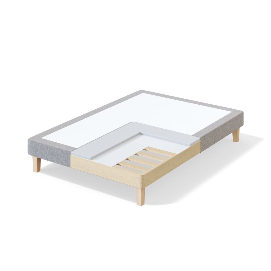 High quality wooden frame covered with upholstery fabric. On top of the bed frame, a high-density layer of foam provides extra comfort. The mattress on the bed frame can be rotated in both the transverse and longitudinal directions, ensuring longer lifespan.