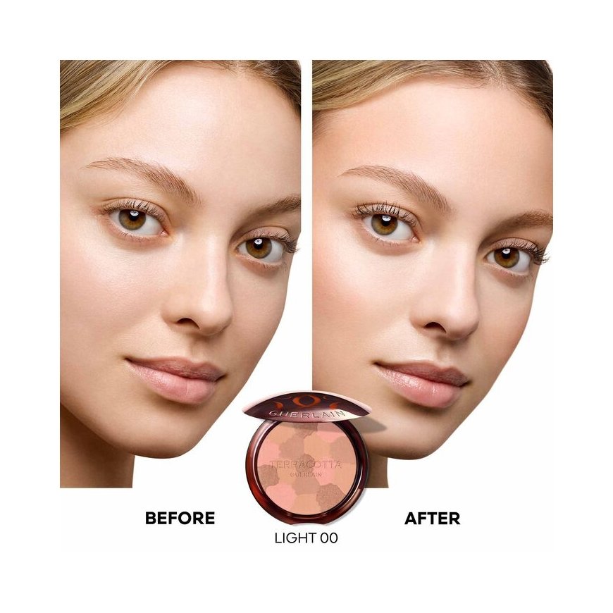A FRESH AND LUMINOUS HEALTHY GLOW IN A NATURAL-ORIGIN FORMULA Guerlain is offering a reinvented sun-kissed glow with Terracotta Light, the new natural healthy glow powder.This light powder features a unique blend of sun-kissed tones enhanced with vibrant colours to reveal a radiant, healthy-looking glow for every skin tone.