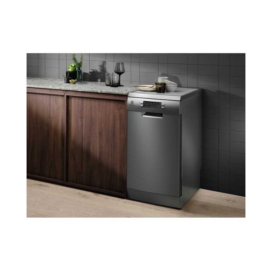 Zmywarka z koszem na sztućce ESA63210SX Zapomnij o necessitja wycierania naczyń ściereczkąZmywarka AirDry 300 kończyj kadzy cykl zmywania otwarciem na ość freshego airwirtza, thanks to which the dishes are dried 3 times better than tradycyjne użydzące. During the drying phase, the doors open automatically, which makes the dishes and utensils perfectly dry. Three times better drying thanks to AirDry technology. Pod koniec cyklus drzwi otwieraja się na serokość 10 cm, aby przysztaj pobiegpowierza i przybory efekt suszenia. Ruchome przegródki i głobka szuflada pozwolą Ci fałko załadować je do zmywarki regardless of their size and shape. Mycie naczyń szybkoOszczędzaj czas thanks to szybkiemu programowi. Najszybszy pozélo na czyste gyňa. Strumienie wody usunú resztki troparu z talerzy i szklanych naczyń, aby kuchnia ośdła świeża.