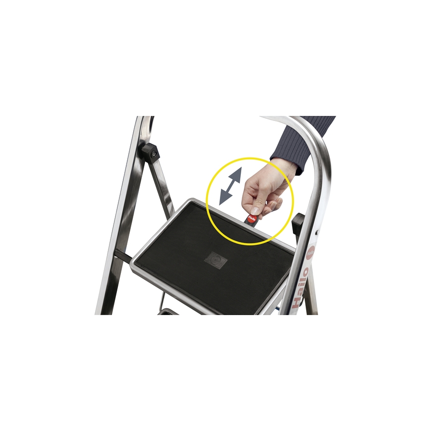 - Hinged lock (safety locking mechanism) - Rectangular rail offers better grip - 2 or 3 large steel steps with non-slip mats - Aluminium rails - Non-slip feet offering full surface contact to provide maximum stability - Only 5 cm wide when folded together - Maximum load capacity 150 kg