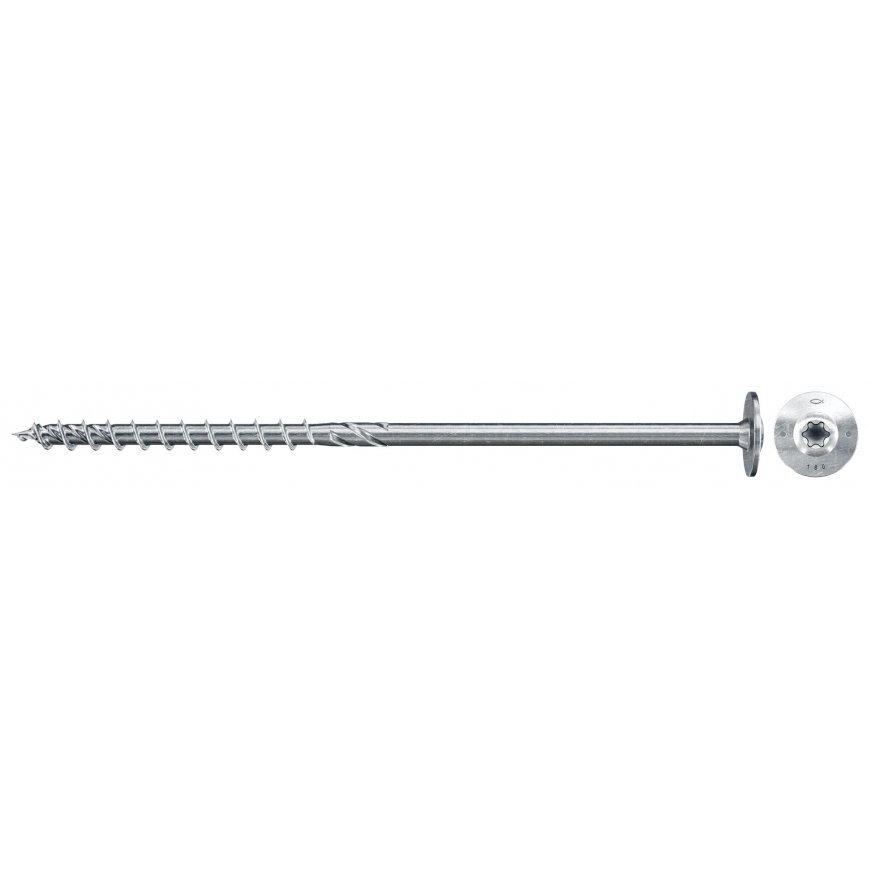 The fischer wood construction screw PowerFast FPF II-WTP BC is a powerful wood construction screw with a flange head, TX star recess drive and partial thread for use in timber constructions. The flange head with TX star recess guarantees stronger contraction of the joined parts and significantly increased resistance against the head being pulled through the components. The partial thread also enables the firm attachment of wooden elements to each other. The European Technical Assessment guarantees added safety. The PowerFast II is particularly easy to screw in without pre-drilling thanks to the thread shape. The PowerFast II thread reaches into the screw tip and ensures a fast bite. The shank ribs reduce the screwing resistance, thus decreasing the required force and battery power for the installation.