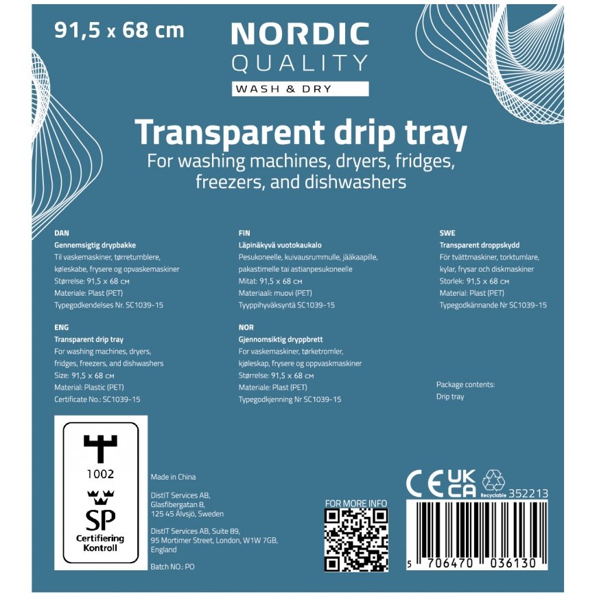 Nordic Quality 352213 dishwasher part/accessory Transparent Drip tray