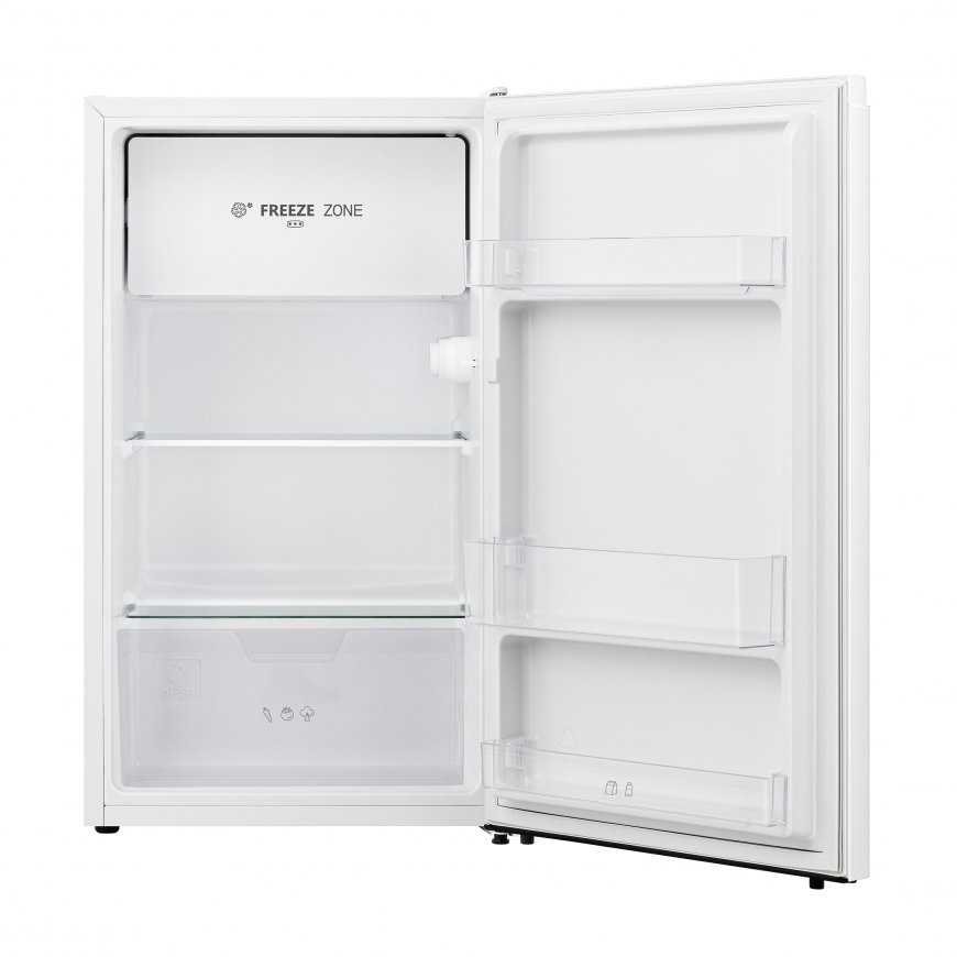 Small practical refrigerator with 75L cooling capacity, and 7L integrated freezer compartment. The cabinet can stand freely, so the top plate of the cabinet provides an extra table space at your fingertips.