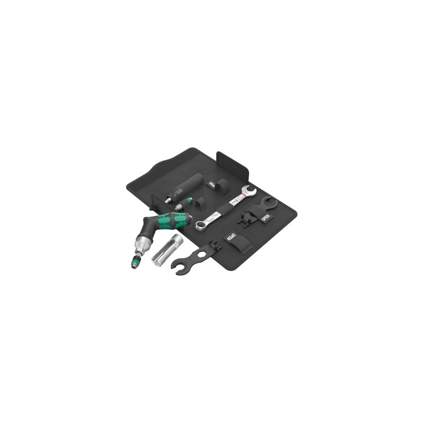 7-piece tool set for installing photovoltaic systems. One adjustable torque screwdriver (pistol handle) 7442 for the measuring range 3.0-6.0 Nm. Digital torque value display. Reliable slip-over mechanism and audible signal when the set torque is reached. One 889/4/1 F Rapidaptor bitholding screwdriver with fast-rotating function for a particularly quick return movement without having to remove the tool during clockwise torque operation. One 6003 Joker ring spanner. The special open end geometry expands the placement possibilities of the tool which makes the ring spanner particularly suitable for narrow spaces. 2 installation tools for MC4 solar connectors (MultiContact). One socket 1/2" (with side wire cutout) size 17 for installing panel connectors, one tool shaft (adapter 1/4" to 1/2") for manually operated socket wrench inserts.