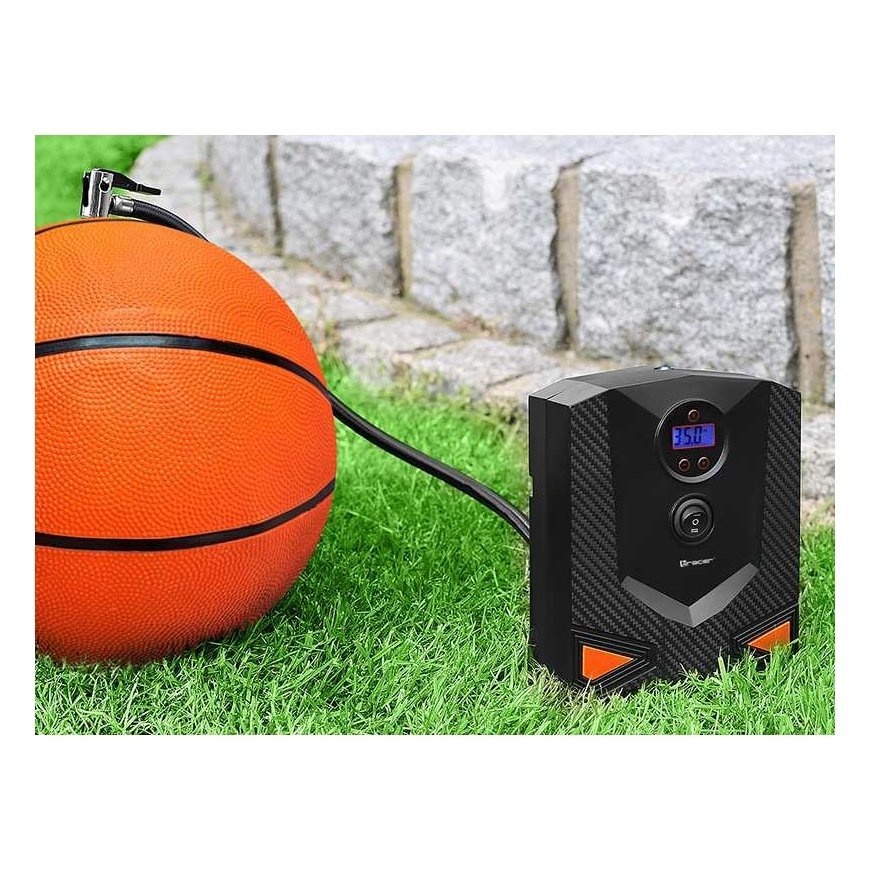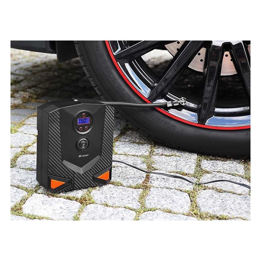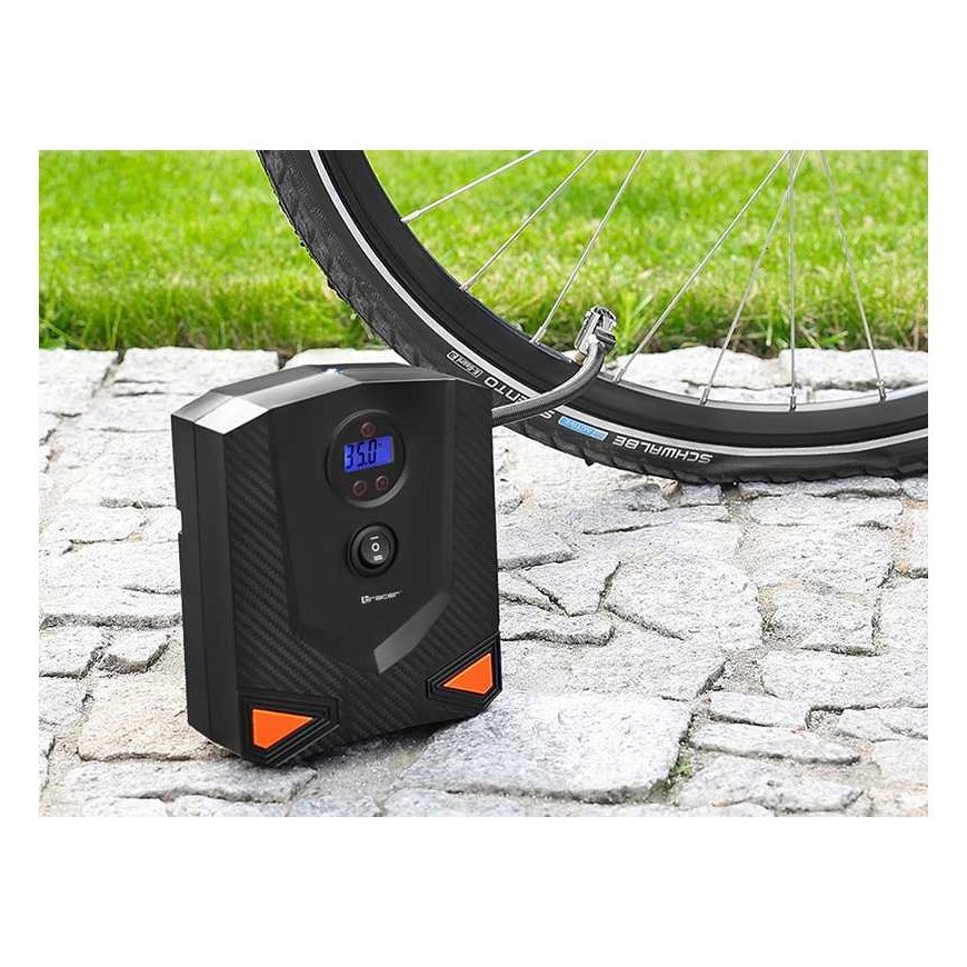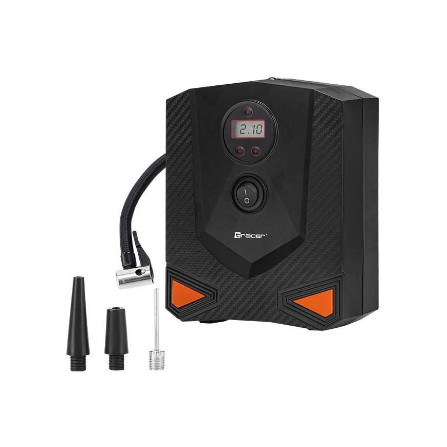 TRACER RES-04-EL Compressor: Reliability and Convenience Prepared for any accident on the road? We present the TRACER RES-04-EL compressor - a modern and universal tool, which, due to its reliability and innovative features, will give you peace of mind and comfort on your trip. for balls, mattresses) - Air flow 15 lpm - 17 mm metal cylinder - Automatic programmer - Digital display - LED lamp Reliable power and performance TRACER RES-04-EL compressor, powered by 9 V and power 120 W, ensures fast and efficient tire inflation in your car. The maximum pressure of 8 bar and the 17 mm metal cylinder are ready for any challenge on the road. Versatility of use The included set of 3 nozzles allows you to use the compressor to inflate various objects such as balls or mattresses, making it an indispensable tool for every trip. Automatic programmer and digital display The innovative automatic programmer allows accurately set the target tire pressure, eliminating the need to monitor the inflation process. The digital display allows you to easily read the current pressure, ensures full control and ease of use. Speed and efficiency 15 liters per minute air flow rate TRACER RES-04-EL ensures fast and efficient inflation, saving your time and nerves when traveling. Full functionality in all conditions The LED lamp allows use the compressor even in low light, ensuring full functionality in all conditions, even at night. The TRACER RES-04-EL compressor is not only a tool, but also your reliable aid on the road, ready to operate in any situation. Discover reliability and convenience with TRACER RES-04-EL!
