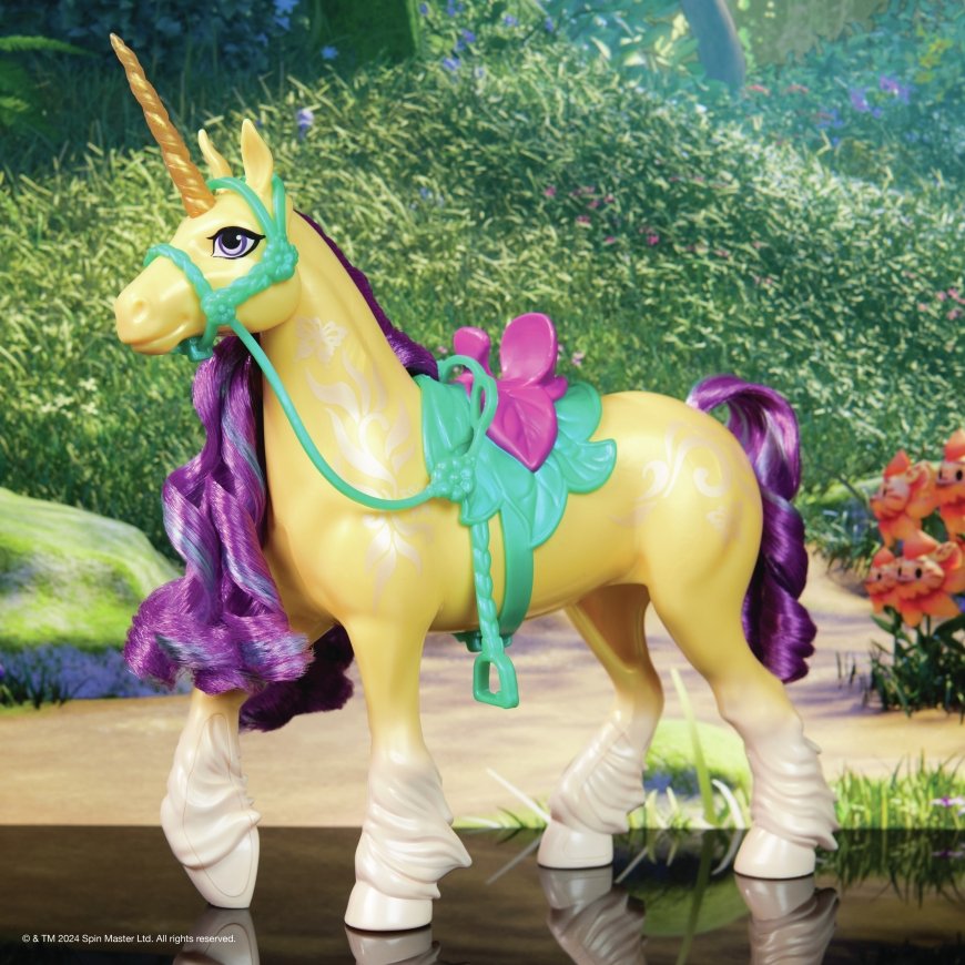 Complete your Unicorn Academy doll collection with Ava’s unicorn, Leaf. Inspired by the NETFLIX animated show and best-selling book series where friendship reins, this 11-inch unicorn toy brings gentle, loving Leaf to life. Beautifully detailed, Leaf features pearlescent Plant Magic markings on her side, a majestic glittery horn, colorful mane and tail, and removable bridle and saddle doll accessories for added play. Gently move Leaf’s head to bring out her personality and relive the magical bonding experience between unicorn and rider with Ava. Brush Leaf’s soft mane and tail with Ava’s styling tool (not included, sold separately with doll) and ride into adventure to protect Unicorn Island and its magic. For more ways to experience Unicorn Academy with your favorite characters, look for Sophia and Isabel dolls and their unicorns, Rainbow Light-up Wildstar and River (each sold separately) and expand your world. The magical bonds between Unicorn Academy students and their unicorns will spark endless imaginative storytelling. For kids who enjoy unicorns and horse toys, dolls & accessories, doll house play, collectibles, plush toys and more, Unicorn Academy toys are fun birthday gifts for girls or gifts for any occasion. Bring home the magic of Unicorn Academy with Leaf.