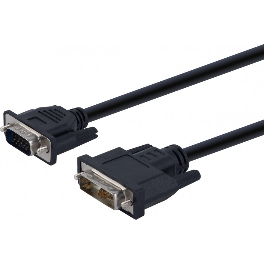This DVI-VGA adapter cable allows you to connect a DVI-A (12+5) connector to a VGA-compatible monitor, projector or other device. The cable supports up to 1080p (1920x1080) resolution, offering sharp and clear image quality. Adapter cable
