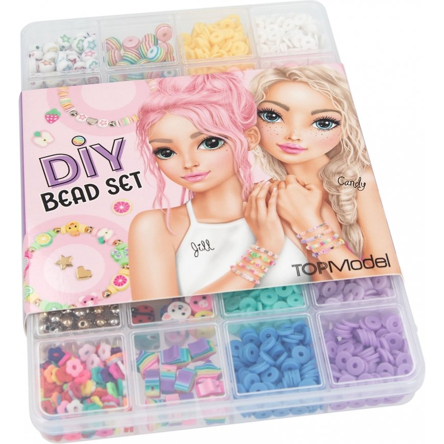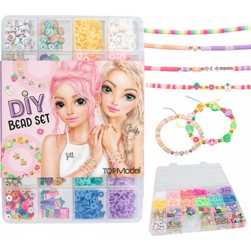 TOPModel bead set, with which you can make wonderful bracelets and necklaces for yourself or a friend! Contains colorful beads in 20 different designs, sorted in a closable plastic box, which also serves as a convenient storage box. Also included is 4 meters through