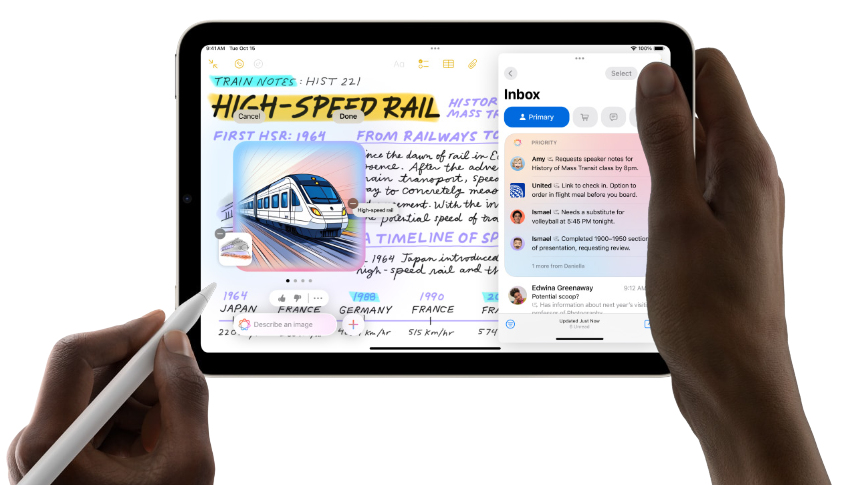 iPad mini is built for Apple Intelligence, the personal intelligence system that helps you express yourself and get things done effortlessly. With groundbreaking privacy protections, it gives you peace of mind that no one else can access your data — not even Apple.