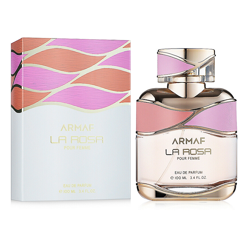 Armaf La Rosa is a women's perfume that can be described as a pleasant and elegant fragrance suitable for everyday wear. This Eau de Parfum combines floral and fruity notes to create a sweet, heady fragrance that is both light and refreshing. Top notes are fresh pear, bergamot, pink pepper and black currant. The heart is a sensual combination of ylang-ylang, tuberose, jasmine, mimosa and neroli. Patchouli, tonka bean, vetiver and hazelnut combine in the base to give the fragrance depth and longevity. The fragrance was released in 2016.