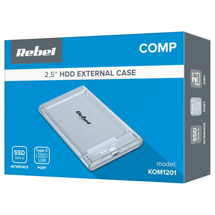 Case Type: ExternalDisk Type: 2.5 inch SATAChassis Interface: USB-C 3.1Disk Interface: SATA III (Max 6 Gbps) Compatible with Windows XP / Vista / Windows 7 / 8 / 10 / 11 / MacOS Maximum Disk Capacity: 2 TBLED diode, informing about the operation of the device Plug & Play Housing material: plastic Power supply: USB Dimensions: 125 x 80 x 13 mm Included: USB-C <-> USB-A cable, user manual