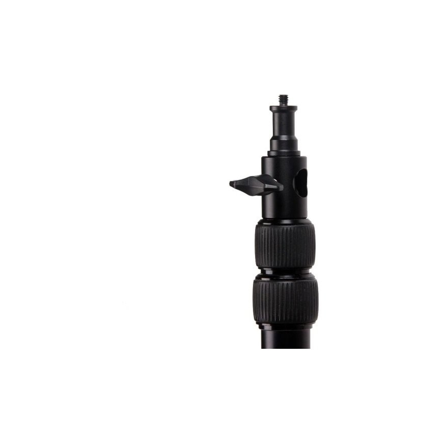 The Caruba table stand with spigot connection is a handy light stand that attaches to a tabletop. Its three-part telescopic structure with twist locks allows for easy height adjustment. It is suitable for all lights with a standard light stand connection. Spigot