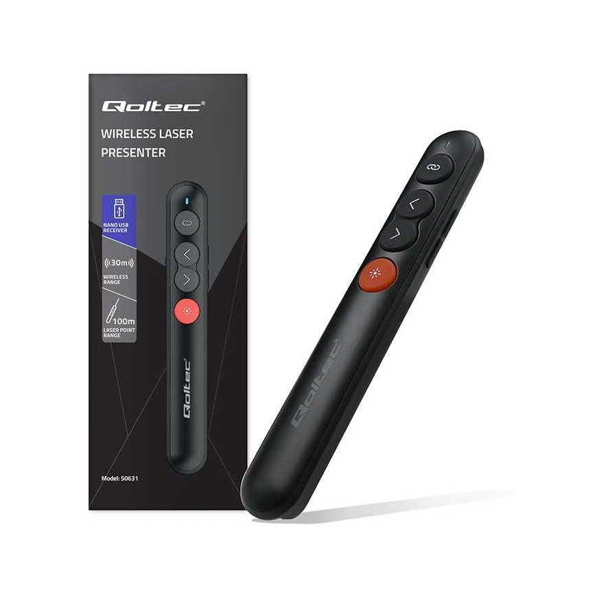 Niężężnie od tego, czy prowadzisz szkolenie, wyłka, czy viządze meetkanie biznesowe, wydzyczne laserowy zepwini Ci plunma kontrolit i swobode. Bezprzewodowe sterowanie pozwolli Ci przełączać slajdy z dowolnego miejsca w pomieszczeniu, sterować głośnością multimediaów bez necessitat podchodzenia do komputera czy laptopa. The laser pointer with widocznością promienia do 100m precyzyjnie directs the attention of the audience to the most important information . This intuitive tool is adapted to the needs of each user. An ideal choice for conference rooms, conference rooms, and other places where you can find efficiency and comfort.
