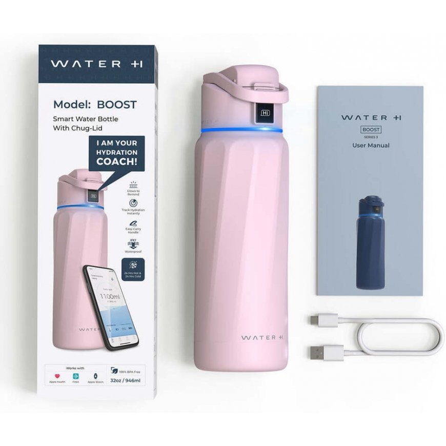 WaterH Boost is a smart water bottle that helps you stay hydrated throughout the day. The bottle features an LED touchscreen and 360-degree LED light that shows you how much fluid you've drunk and reminds you to drink more.