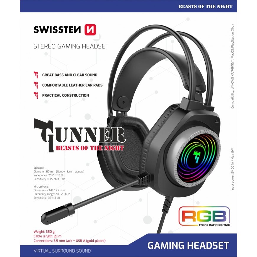 The Swissten Gaming Headset Gunner draws you into the game thanks to the backlit sides and top-quality comfort provided by the high-quality leather material. These gaming headset will offer you not only perfect sound, but also a stylish design and long-lasting comfort. Thanks to the universal leather headset, it fits practically every gamer's head.