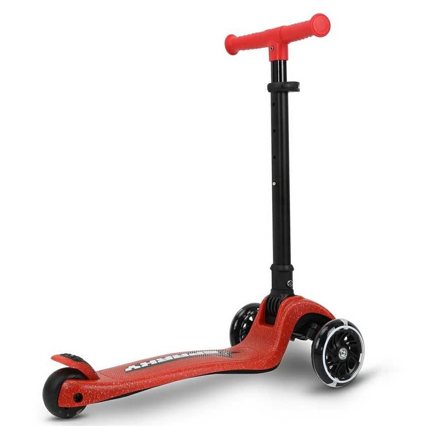 SPARKY three-wheeled scooter - a colorful and fun journey! It is a great choice for children who value a good mood. Equipped with 4-stage handlebar height adjustment, it grows with the child and ensures comfortable riding for a long time. The frame is made of aluminum, which makes the scooter lightweight.